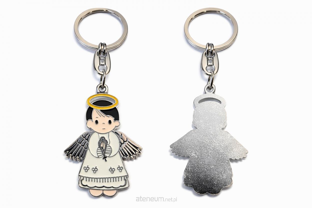 Aniołek, wykonany z dbałością o detale, jest barwny i przyciąga wzrok. Ubrany w białą szatkę, w rączkach czule trzyma różaniec, symbolizujący modlitwę i wiarę. Jego niewielkie rozmiary sprawiają, że jest dyskretny, a jednocześnie wystarczająco wyrazisty, by wyróżnić Twoje klucze. Solidne wykonanie z metalu gwarantuje trwałość i odporność na codzienne użytkowanie.