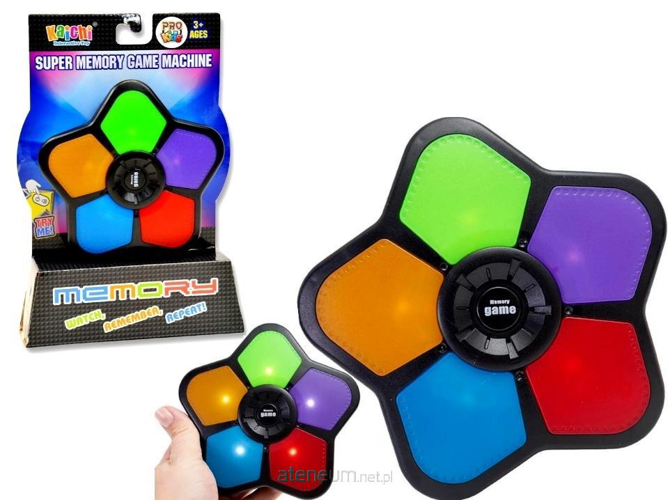 Trenuj pamięć, refleks i koncentrację w formie, która wciąga szybciej niż szkolna kartkówka. Elektroniczna gra pamięciowaSuper Memory Game Machineto klasyczna zabawa typuzapamiętaj i powtórz , podana w nowoczesnej, kolorowej odsłonie. Urządzenie prezentuje sekwencję świateł, a twoim zadaniem jest odtworzyć ją w odpowiedniej kolejności prosto w teorii, ambitnie w praktyce.Kompaktowy kształt i pięć wyraźnych, kolorowych pól sprawiają, że gra jest intuicyjna i wygodna w obsłudze nawet dla młodszych graczy. Z każdym kolejnym poziomem sekwencje stają się dłuższe, a wyzwanie rośnie, skutecznie angażując uwagę i ćwicząc pamięć krótkotrwałą. To zabawka, która uczy skupienia bez moralizowania i rozwija umysł mimochodem czyli dokładnie tak, jak lubimy najbardziej.