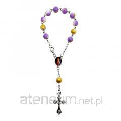 Elegancka dziesiątka różańca wykonana z pięknych, fioletowych szklanych koralików o średnicy 8 mm, imitujących naturalny kamień. Ta stylowa dziesiątka jest zapinana, co umożliwia jej wygodne noszenie lub zawieszenie, na przykład w samochodzie. Łącznikiem różańca jest delikatna postać Maryi, a całość zwieńczona jest ozdobnym,metalowym krzyżem o wymiarach 32x17 mm. To subtelne i pełne duchowego znaczenia akcesorium, idealne do codziennej modlitwy i jako wyraz wiary.