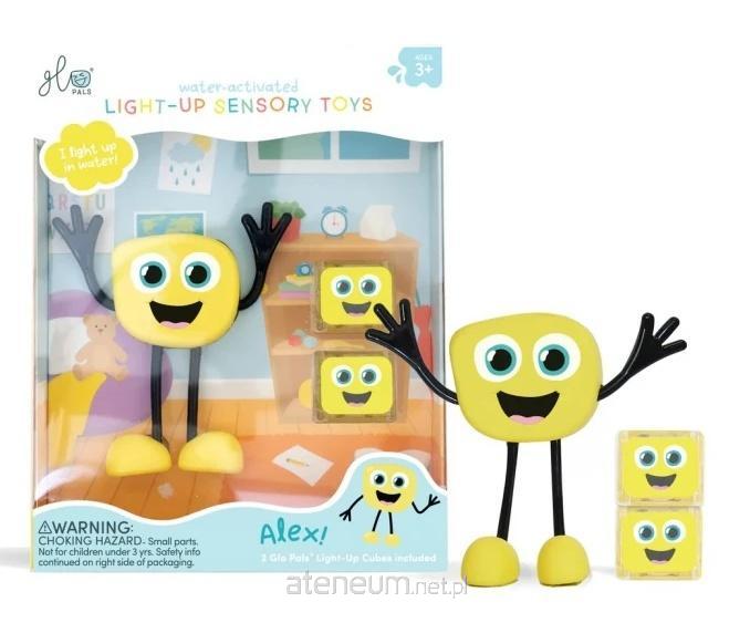 Każdy z przyjaciół Glo Pals ma giętkie rączki, wyróżnia go kolor i charakter. Giętkie rączki Alexa sprawiają, że dzieci mogą nim manipulować rozwijając przy tym mała motorykę. Jeśli pragniesz, żeby kumpel Alex świecił w wodzie, umieść dołączoną do zestawu kostkę w wyznaczone miejsce z tyłu postaci (na plecach), następnie zanurz postać w wodzie i obserwuj jak świeci. Kumple Glo Pals są bezpieczni i będą towarzyszyć dzieciom przez długi czas w kąpieli i zabawach w wodzie. Nie mają zakamarków, gdzie mogłaby się ukryć pleśń i brud, a bakterie mogłyby się rozmnażać!
