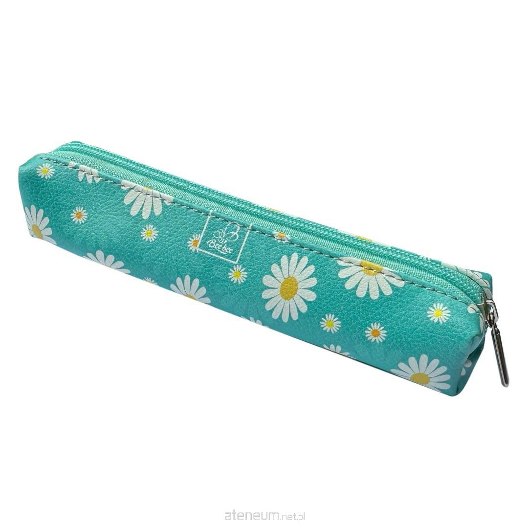 Piórnik mini prostkąt Stokrotki na turkusie