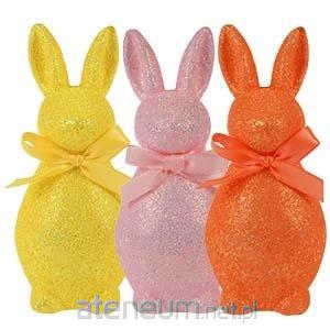 Błyszczący zając flokowany to efektowna dekoracja wielkanocna, która łączy aksamitną powierzchnię z delikatnym, brokatowym połyskiem. Dzięki temu figurka pięknie odbija światło i stanowi wyrazisty akcent w wiosennych aranżacjach. Klasyczna forma zajączka uzupełniona ozdobną kokardką nadaje dekoracji elegancki, a jednocześnie radosny charakter. Intensywne, pastelowe kolory doskonale wpisują się w klimat Wielkanocy i wiosennych dekoracji. Rozmiar 14,5 x 6,3 cm sprawia, że figurka jest dobrze widoczna, a jednocześnie łatwa do ustawienia w różnych miejscach.