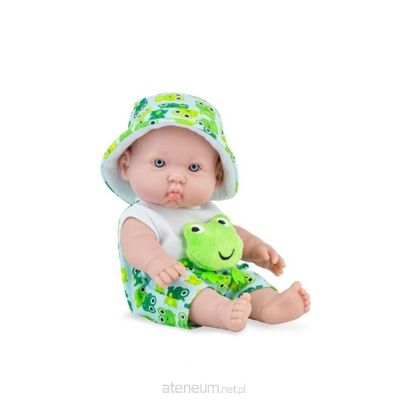 Niewielki, 28 cm, uroczy bobas w ślicznym stroju w zielone żabki to oryginalna wersja popularnego modelu Betty, zaprojektowanego i ręcznie wykonanego w Hiszpanii w firmie Marina & Pau. Urzeka słodki wyraz twarzy, wyrzeźbione na główce włoski niemowlęce oraz jasnoniebieskie, ręcznie malowane otwarte oczy. Podkreślone rysy twarzy, wyrzeźbione linie papilarne, dołeczki na piąstkach czy fałdki pod kolanami sprawiają, że bobas wygląda jak żywy. Dziewczynka została wykonana z gładkiego, przyjemnego w dotyku, bezpiecznego winylu. Ma zaznaczoną płeć. Proponowana dla dzieci w wieku od 3 lat, świetnie sprawdza się także podczas zabawy w kąpieli. Nie posiada włosów ani rzęs, brwi są lekko zaznaczone. Ruchome rączki, nóżki oraz główka sprawiają, że można ułożyć lalę w różnych pozycjach. Betty siedzi samodzielnie.