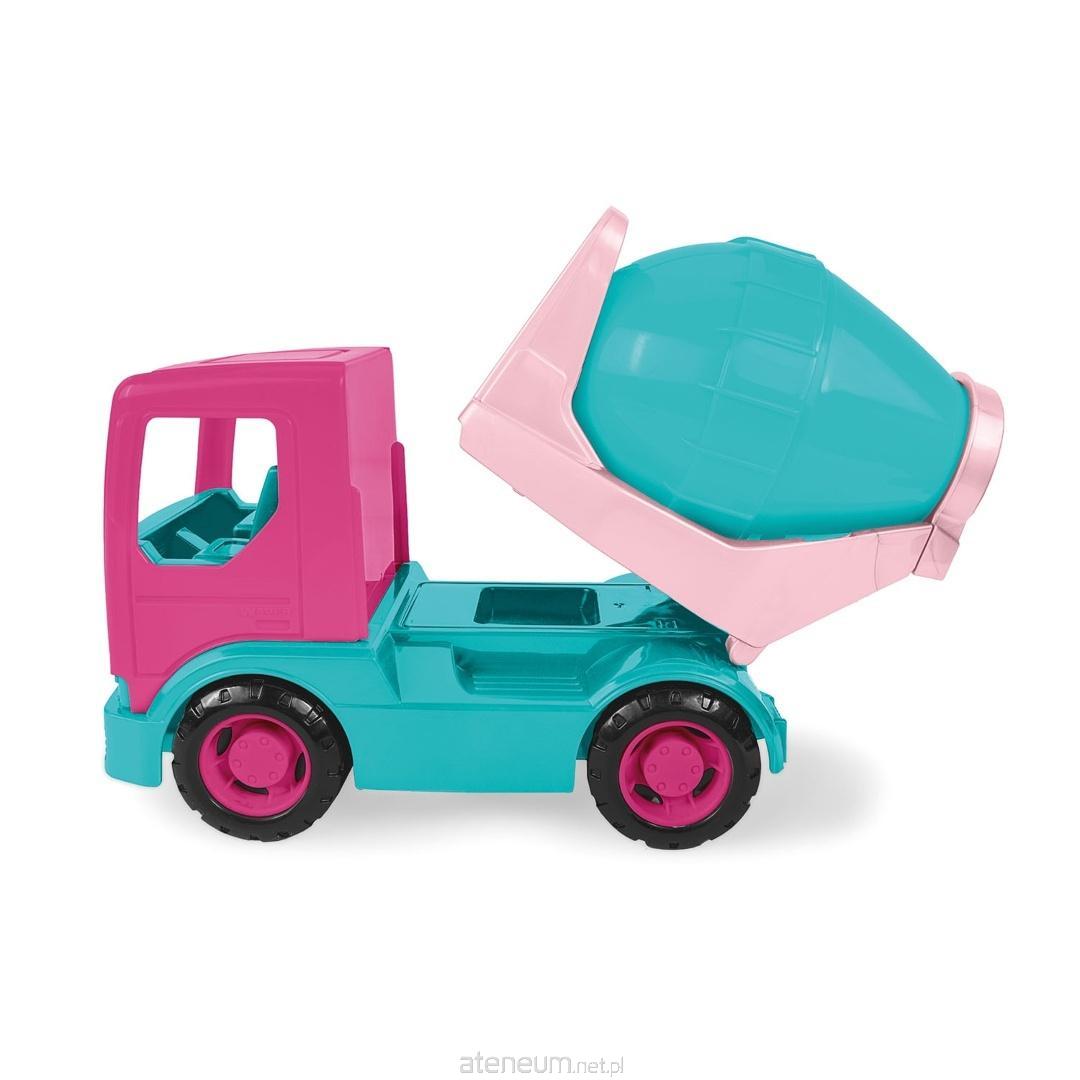 Pojazd jest lekki, zwrotny i wytrzymały, a jego długość wynosi 24,5 cm. Betoniarka została wyposażona w obrotową gruszkę (mieszalnik), zamontowaną na ruchomym podwoziu. Podczas zabawy dzieci mogą wsypywać do wnętrza mieszalnika piasek lub wlewać wodę, imitując prawdziwe prace budowlane. Różowo-miętowa kolorystyka nadaje pojazdowi nowoczesny wygląd i wyróżnia go na tle klasycznych zabawek budowlanych.