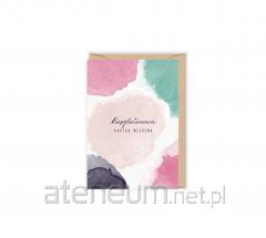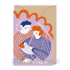 Otwierana kartka, pusta w środku, wykonana na papierze (z certyfikatem EFC) z wyraźnie widoczną fakturą. W zestawie ekologiczna koperta.