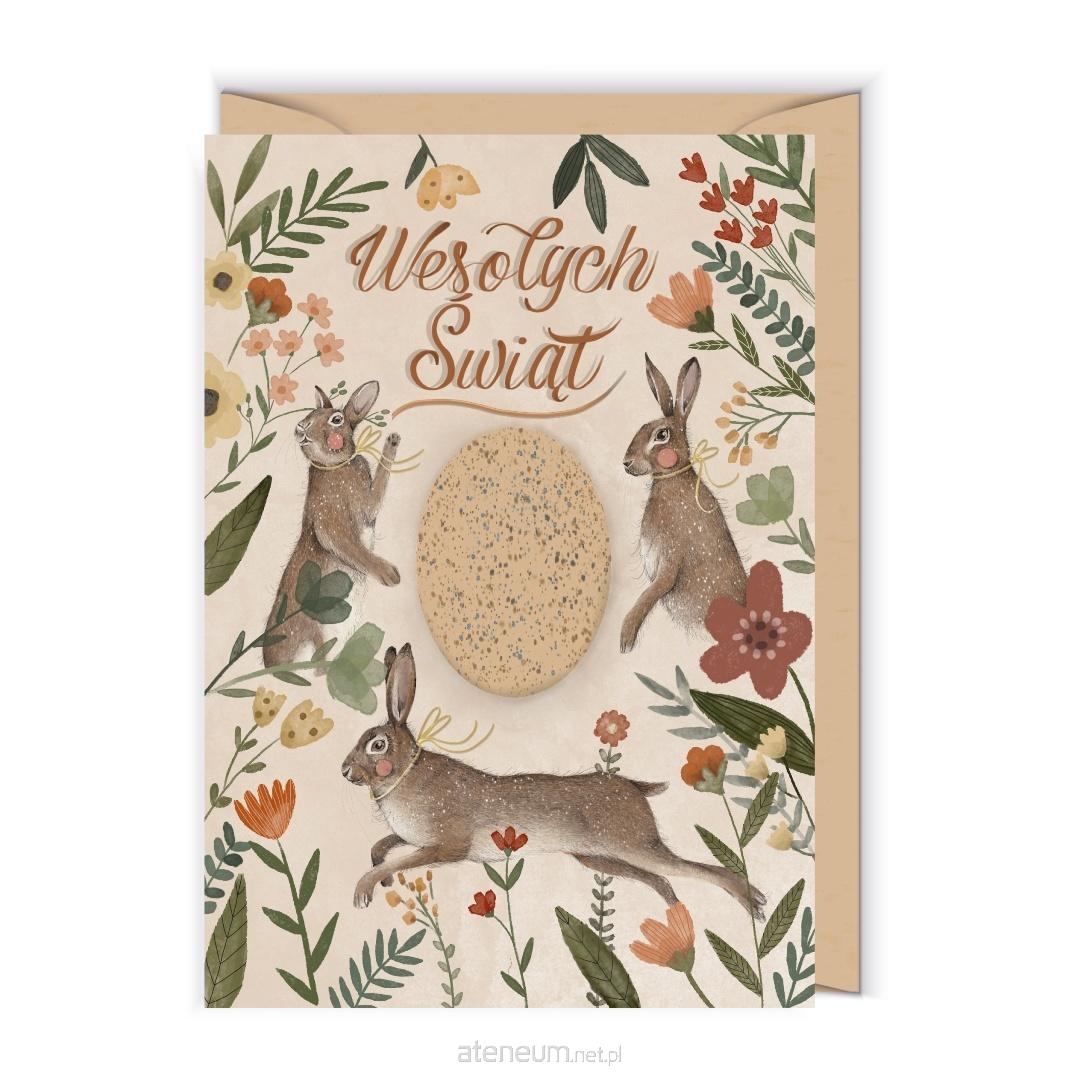 Otwierana kartka, pusta w środku, wykonana na papierze (z certyfikatem EFC) z wyraźnie widoczną fakturą. W zestawie ekologiczna koperta.