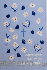 Minimalistyczne i delikatne zaproszenie na Komunię Świętą do własnoręcznego uzupełnienia. Karta zaproszenia ma wymiar 105x148 cm po złożeniu. Drukowana jest na papierze o wysokiej gramaturze. Zaproszenie do własnoręcznego uzupełnienia. W zestawie ekologiczna koperta C6.