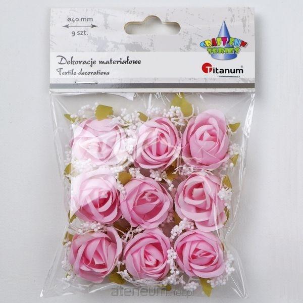 Dekoracje materiałowe róże O40mm różowe z gipsówką 9szt.