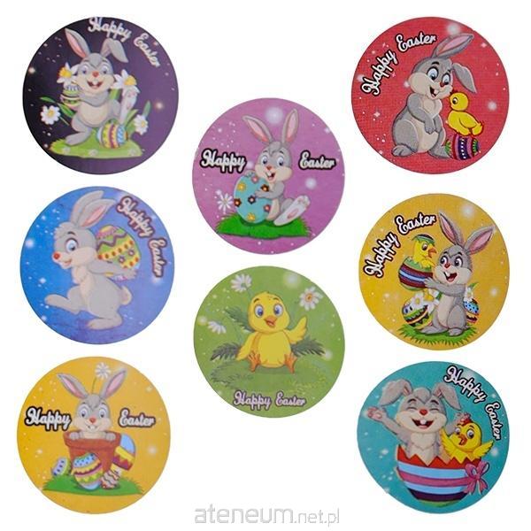 Naklejki papierowe na taśmie 8 wzorów Wielkanoc O25mm 500szt.