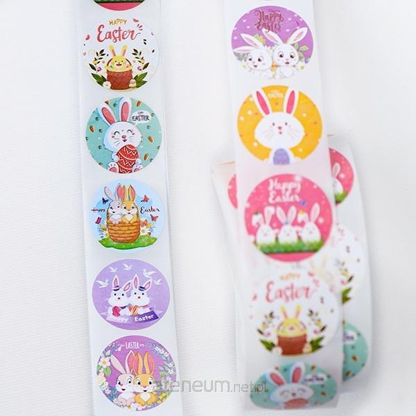 Naklejki papierowe na taśmie 8 wzorów Wielkanoc O25mm 500szt.