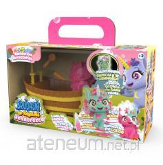 Zawartość opakowania: 1 figurka jednorożca, 1 tubka z różowym błotkiem, 5 akcesorium, 1 wanienka z natryskiem.