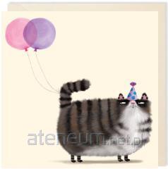 Karnet kwadrat 009 Urodziny Kot z żółtym balonem