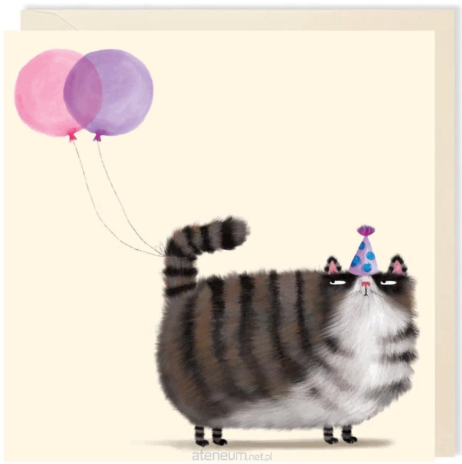Karnet kwadrat 008 Urodziny Kot z balonem