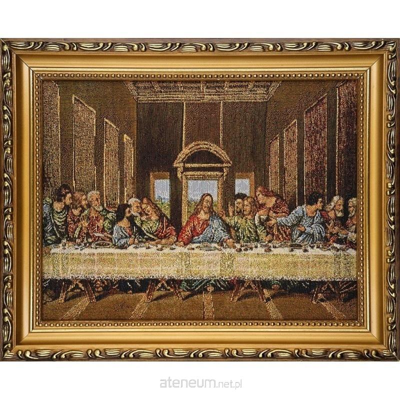Zanurz się w monumentalnej scenie Ostatniej Wieczerzy przedstawionej na tym wyjątkowym, haftowanym obrazie. W poziomej kompozycji o wymiarach 27,5 x 22 cm uchwycono pełne powagi i symboliki spotkanie Jezusa z Apostołami przed Jego męką. Bogate kolory oraz dostojne złote nici podkreślają sakralny charakter wydarzenia i dodają mu wyjątkowego blasku. Całość oprawiona jest w elegancką, zdobioną złotą ramę o szerokości około 3 cm, która doskonale akcentuje doniosłość chwili. Ten misternie wykonany obraz będzie stanowił wyjątkową ozdobę każdego wnętrza i inspirujący element kontemplacji Tajemnicy Eucharystii.