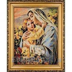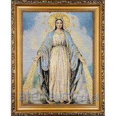 Haftowany Obraz Niepokalanego Serca Maryi w Złotej Ramie - Złote Nici, 27x22 cm