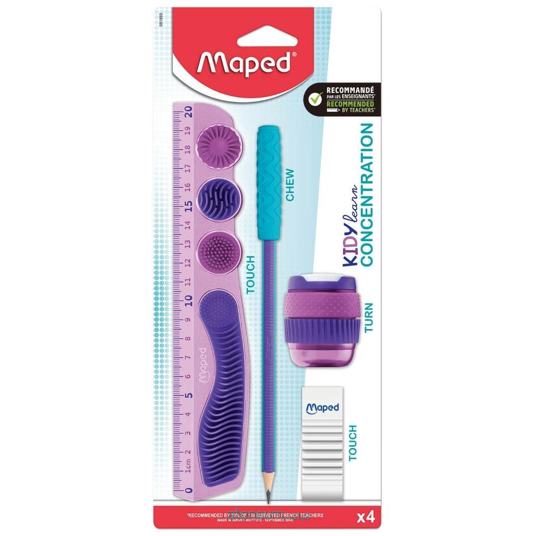 Kolekcja Kidy Learn Concentration to artykuły szkolne wyposażone w elementy sensoryczne poprawiające koncentrację.Zestaw 5 elementów: