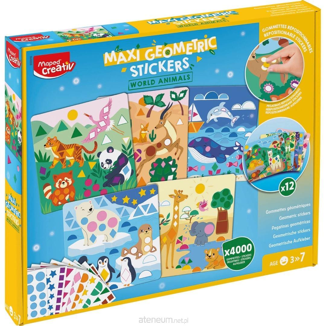Aż 4000 geometrycznych naklejek do wykorzystania. Podczas kreatywnej zabawy w ozdabianie kart dzieci: