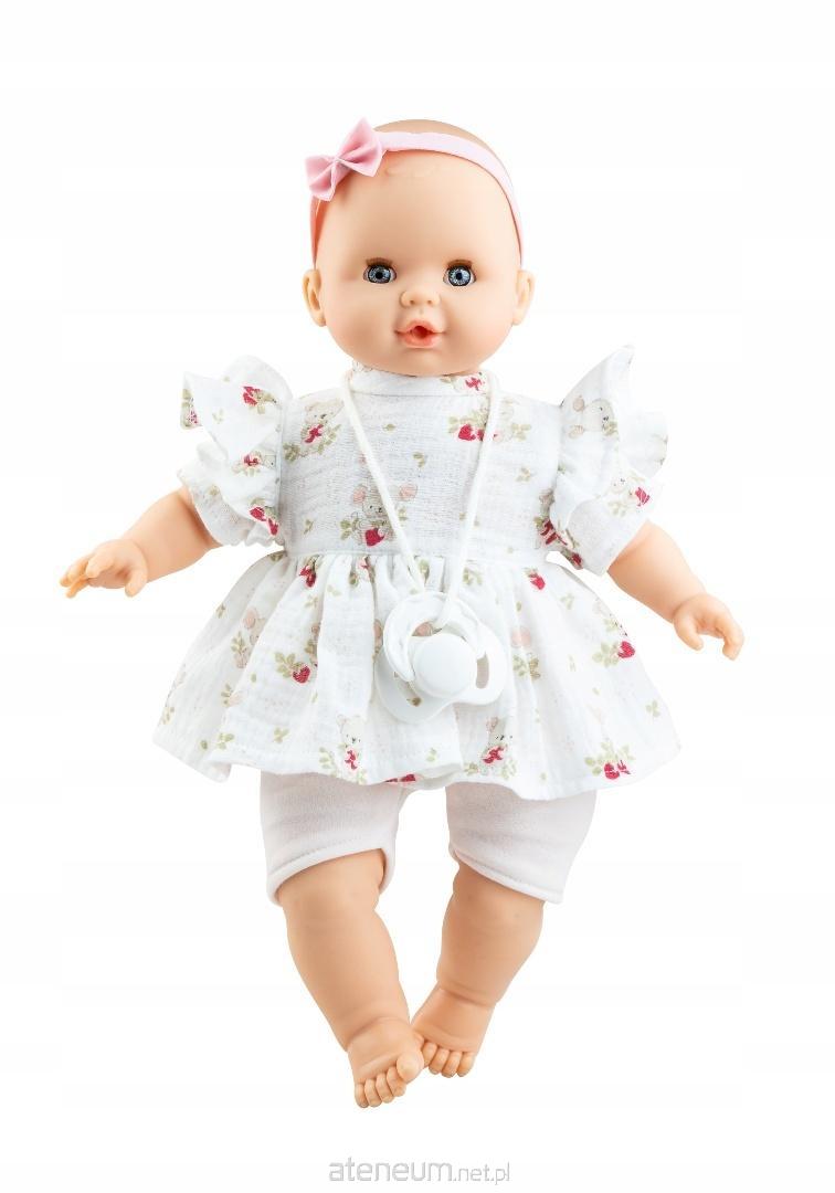 Firma Paola Reina tworzy wyjątkowe i niepowtarzalne lalki, których marką stały się piękno i najwyższa jakość wykonania! Lalki firmy Paola Reina to gwarancja doskonałej jakości wykonania. Wytwarzane są ręcznie 100% w Hiszpanii. Bobas wykonany z najlepszego, pachnącego delikatnie karmelem, winylu, brzuszek lalki jest miękki, materiałowy. Laleczka została pięknie i starannie wykonana - ma idealnie zachowane proporcje, śliczne zamykane oczy z rzęsami. Laleczka posiada mechanizm dźwiękowy, dzięki któremu płacze oraz mówi mama, papa. Po włożeniu smoczka do ust laleczka uspokaja się. Ze szczególną dbałością zostało również uszyte ubranko, które zachwyca fasonem i kolorami. Wielkość laleczki: 36 cm. Laleczka zapakowana jest w oryginalne pudełko.