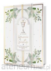 Książeczki PMB Q to produkt wyjątkowy - pięknie wydany, elegancki, zdobiony złotą oraz perłową folią, z kolorowym wnętrzem z pięknymi grafikami i cytatami oraz życzeniami i miejscem na osobistą dedykację. Na wewnętrznej stronie okładki wklejona jest specjalna, nieduża koperta, w której można przekazać kartę podarunkową lub banknot. Książeczka PMB Q Kukartka to idealny prezent na wyjątkową okazję, jaką niewątpliwie jest Pierwsza Komunia Święta. Cechy szczególne: Format: 20 x 20 cm zdobienie: złota oraz perłowa folia wnętrze: kolorowe, z grafikami, cytaty, miejsce na dedykację i wpisanie miejsca/godziny uroczystości, gratis: koperta na drobny upominek wewnątrz, okazja: komunia, Pierwsza Komunia Święta.