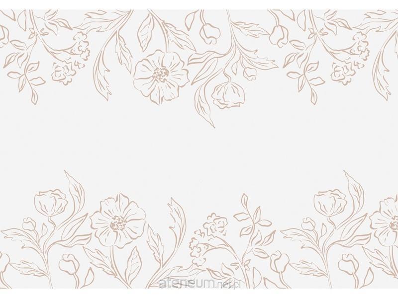 Bieżnik z flizeliny w kolorze złamanej bieli z beżowym, kwiatowym nadrukiem. Szerokość ok. 40 cm, długość ok. 5 m.