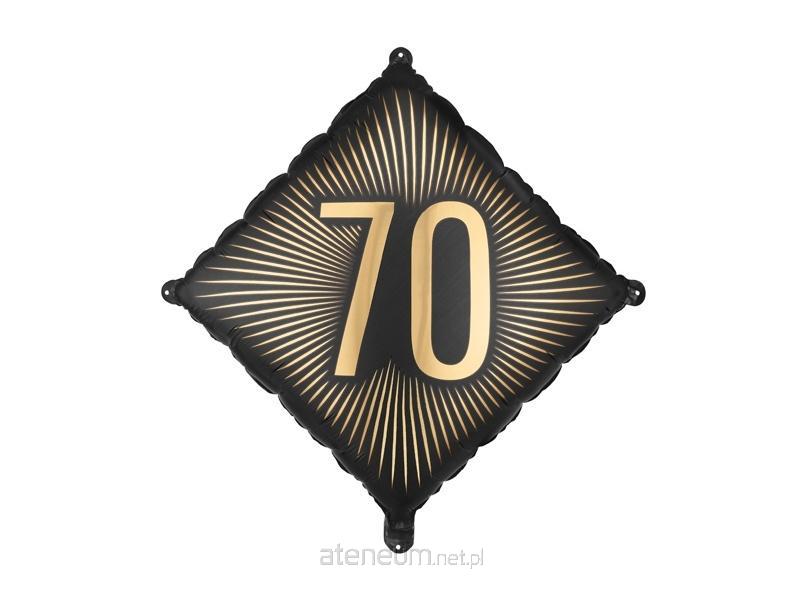Balon foliowy w kolorze czarnym ze złotym napisem 70 Wymiary przed napompowaniem ok. 54 x 54 cm (20 x 20\\'\\'), wymiary po napompowaniu ok. 46 x 46 cm Do napompowania powietrzem i helem. Zestaw zawiera słomkę.