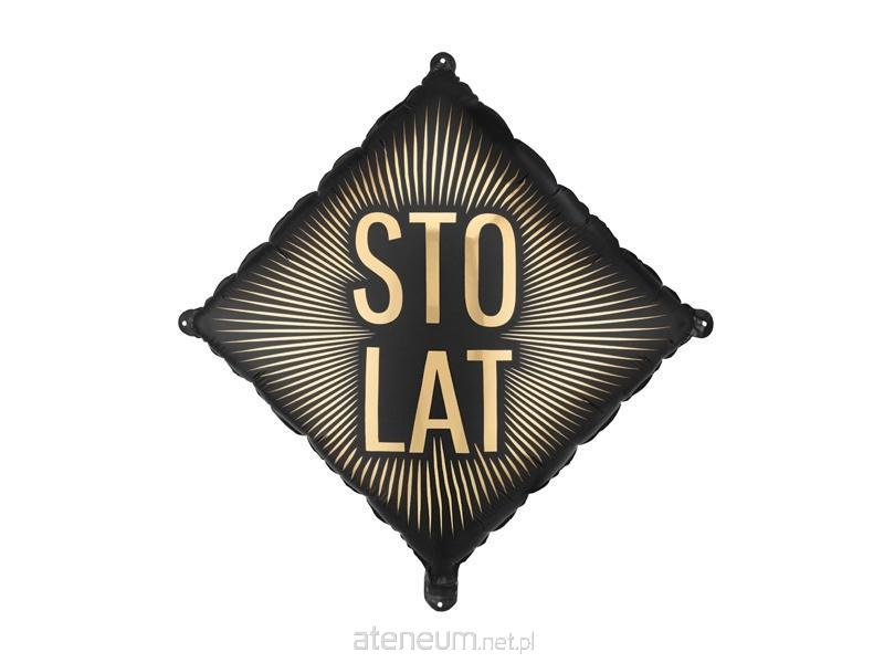 Balon foliowy w kolorze czarnym ze złotym napisem \\'\\'Sto lat\\'\\'. Wymiary przed napompowaniem ok. 54 x 54 cm (20 x 20\\'\\'), wymiary po napompowaniu ok. 46 x 46 cm (18 x 18\\'\\'). Do napompowania powietrzem i helem. Zestaw zawiera słomkę.