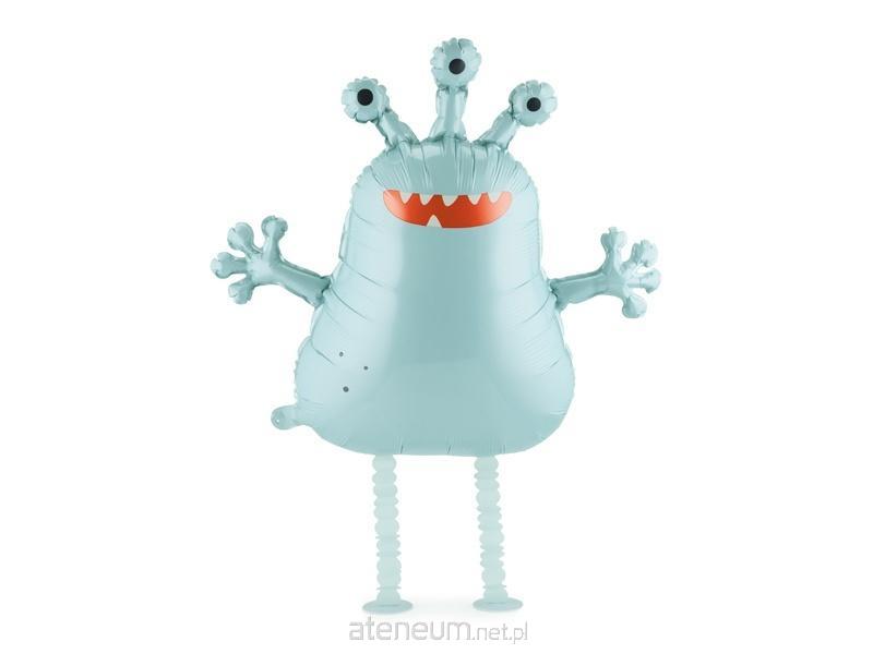 Chodzący balon foliowy Ufoludek, w kolorze jasno mglisto-niebieskim. Wymiary przed napompowaniem ok. 82 x 74,5 cm (32,3 x 29,3\\'\\'), wymiary po napompowaniu ok. 58 x 60 cm (22,8 x 23,6\\'\\'). Wysokość nóżek około 25 cm. Balon do nadmuchania helem. Zestaw zawiera słomkę.