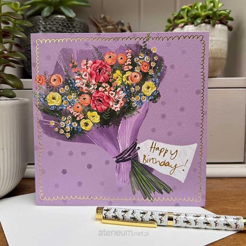 Karnet bez tekstu wewnątrz, w zestawie z białą kopertą. Wymiary 160 x 160 mm. Wyprodukowany w Wielkiej Brytanii.