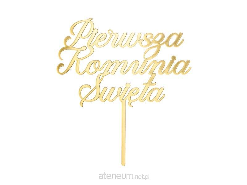 Topper akrylowy na tort \\'\\'Pierwsza Komunia Święta\\'\\' w kolorze złotym, wysokość ok. 16.5 cm, szerokość około 15 cm.
