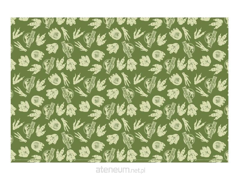 Obrus papierowy Jurassic World w kolorze zielonym z nadrukiem. Rozmiar po rozłożeniu 180 x 120 cm.