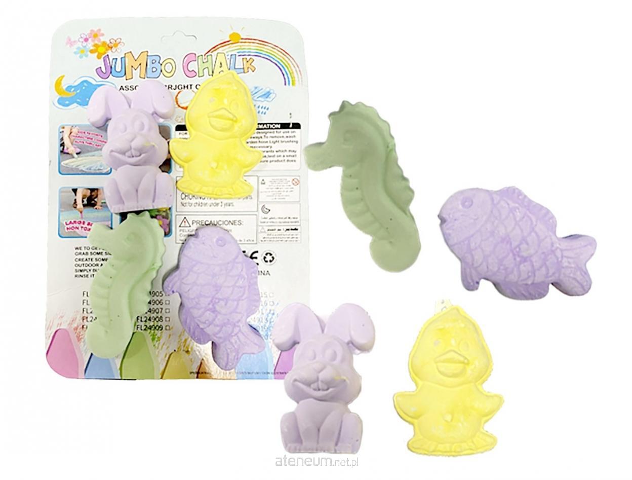 W zestawie: 4 kredy w różnych kolorach i kształtach: zając, kaczka, konik morski, ryba; 3+