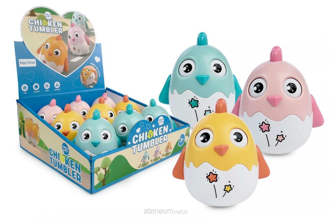 wys. kurczaka 12 cm, 3 kolory do wyboru. Funkcje: kurczaczek kołysze się na boki przy dźwięku dzwoneczków, ruchome oczy. Pozostałe informacje: wym. disp. 29,5 x 12,5 x 29 cm, wiek: 3+