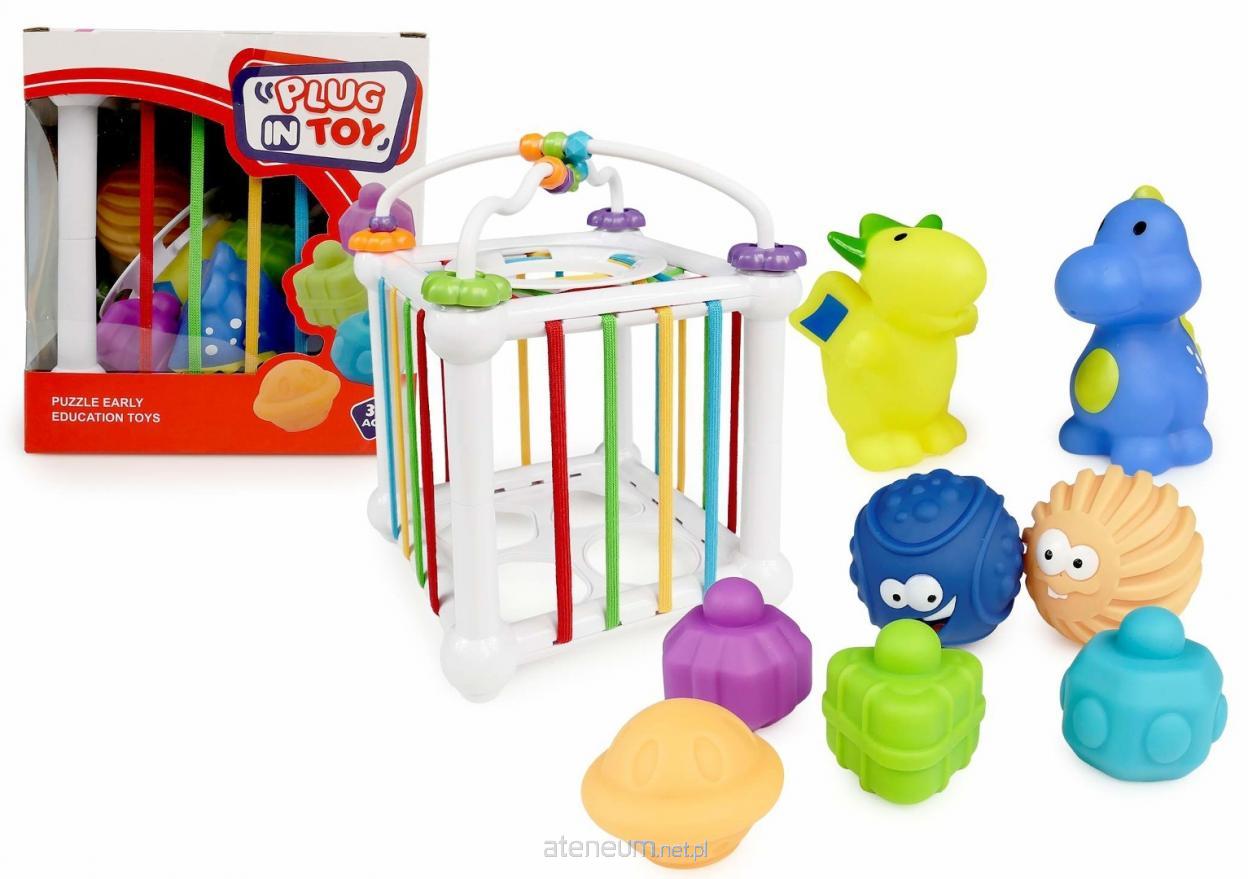 W zestawie: sorter tasiemkowy, 2 miękkie dinozaury, 2 piłki, labirynt, funkcje: zabawa polega na wkładaniu i wyciąganiu dołączonych figurek przez elastyczne tasiemki sortera, labirynt zamontowany na górze zabawki pozwala na przesuwanie koralików po szlaczkach, wym. opak. 15,6 x 17 x 15,6 cm