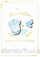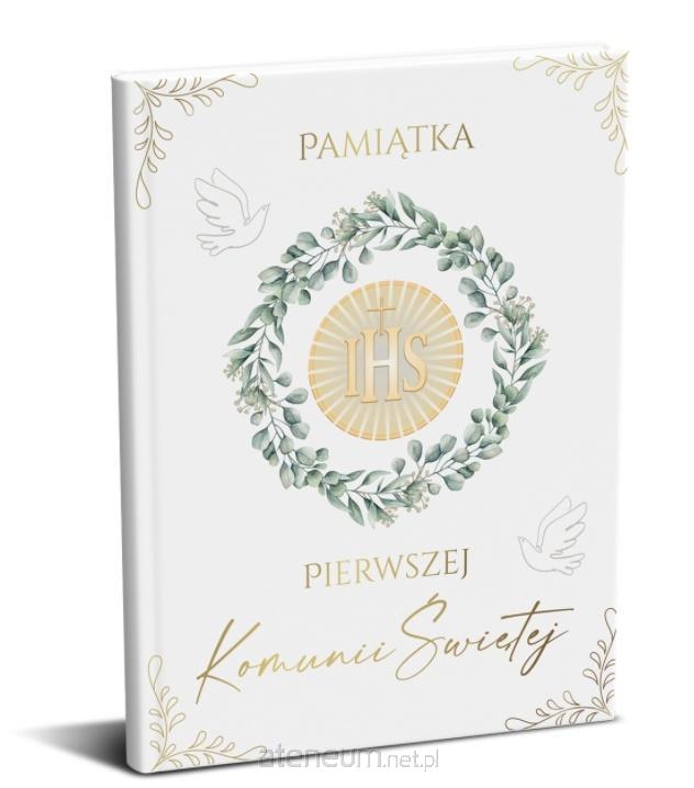 Książeczka z Okazji I Komunii Świętej w formacie A5 wraz z kopertą w środku.