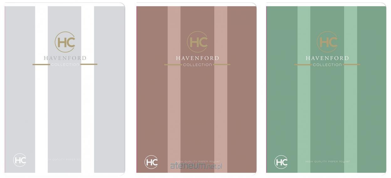 Zeszyt A4 z zadrukiem kratka, który idealnie sprawdzi się jako niezbędne narzędzie w szkole.\nZestawienie kompaktowego formatu A4 z liczbą kartek wynoszącą 32 zapewnia odpowiednią przestrzeń do zapisywania notatek, wykonywania szkiców czy rozwiązywania zadań.\nZeszyt wykonany został z wysokiej jakości papieru o gramaturze 90g, co gwarantuje trwałość i wygodę pisania.\n Dodatkowo, środek zeszytu został zadrukowany kratką, co ułatwia organizację notatek oraz czytelność zapisanych treści.\nOkładka zeszytu została specjalnie pokryta hot stampingiem + folią softtouch, który nie tylko nadaje mu elegancki wygląd, ale także chroni przed zabrudzeniami i uszkodzeniami.\n Dodatkowym atutem są zaokrąglone rogi, które zapewniają komfort podczas użytkowania.\nOprawa zeszytu jest miękka, co daje możliwość swobodnego przeglądania kartek oraz składania zeszytu w dowolny sposób. Dzięki temu zeszyt idealnie dopasuje się do każdej potrzeby. idealny do szkolnych notatek i zadań\n praktyczny i wygodny w użytkowaniu\n wzór HAVENFORD\n format A4, 32 kartek w kratkę\n grubość kartek 90g\n liniatura niebieska, brak marginesów\n okładka miękka\n uszlachetnienie: HS + folia softtouch\n wewnętrzna okładka bez nadruku\n etykieta do wpisania danych na okładce zewnętrznej\n trwałe materiały i solidne wykonanie\n zaokrąglone rogi