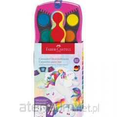 Łatwo zmywalne farby akwarelowe o bardzo dużej wydajności. Sprawdzają się podczas nauki malowania. Mogą być idealnym prezentem dla małego artysty. Dzięki wysokiej odporności na światło, kolory nie wyblakną a prace plastyczne zachowają swoje intensywne barwy przez długi czas. Składają się z wysokiej jakości drobno roztartych pigmentów, połączonych rozpuszczalnym w wodzie spoiwem. Oprócz pigmentów i spoiw akwarele szkolne zawierają pewne ilości wypełniaczy, które sprawiają, że farba wysychając matowieje. Dzięki temu nakładając farbę grubiej można malować technikami zbliżonymi do gwaszu, a w większych rozcieńczeniach technikami charakterystycznymi dla akwareli. Akwarele można wykorzystywać w technikach łączenia z farbami temperowymi, plakatowymi i kredkami woskowymi. Akwarele przeznaczone są głównie dla dzieci i młodzieży szkolnej rozpoczynającej edukację plastyczną. Dzięki swej postaci mogą być łatwo przenoszone np. w uczniowskich tornistrach oraz przechowywane przez długi czas bez obawy zmiany właściwości. Farby akwarelowe są tzw. farbami suchymi, nie wylewają się i łatwo je zmyć, dlatego są idealny dla najmłodszych artystów. Zestaw wysokiej jakości farb akwarelowych w 21 kolorach Całość zamknięta jest w plastikowym pudełku, który wraz z pędzlem tworzy gotowy zestaw do malowania i ułatwia przechowywanie.