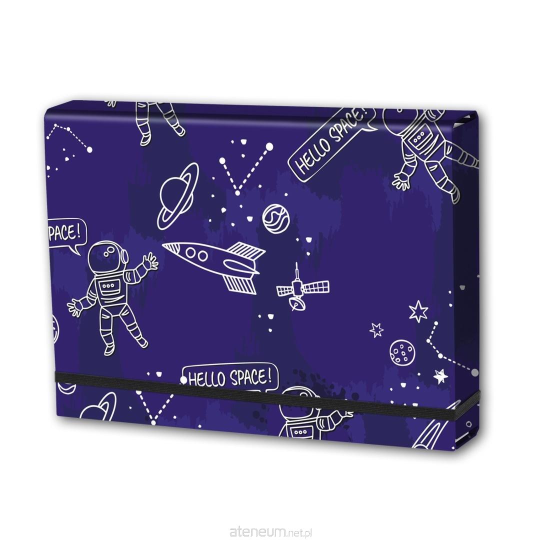 Wykonana z tektury 1,7mm, nitowane boki z okleinowanymi krawędziami, zapinana na płaską gumkę 10 mm . Wzorzysta okleina uszlachetniona błyszczącą folią polipropylenową. Wymiary w cm; 32X23,5X4,5