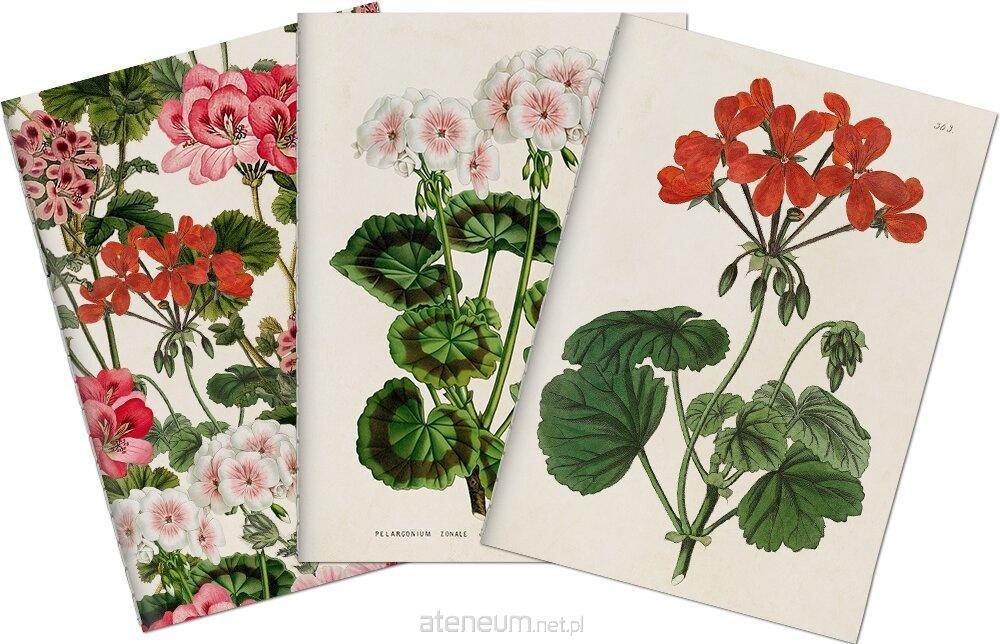 Zestaw 3 ozdobny notatników w formacie A6, złączonych ozdobną wstążką.