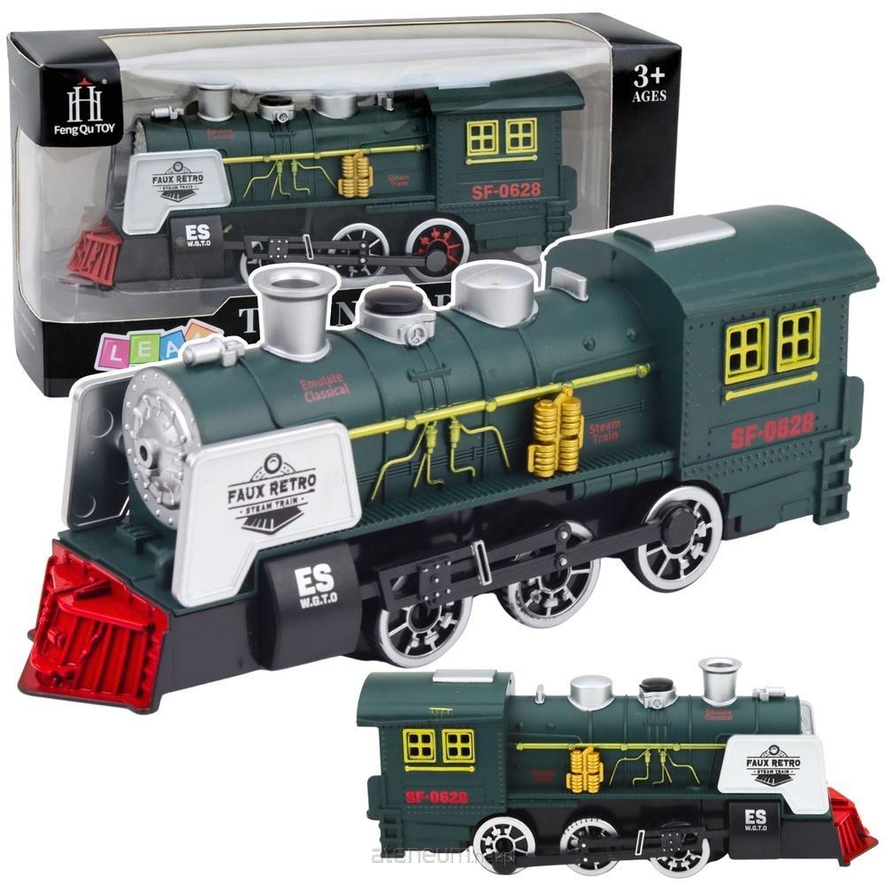 KLASYCZNA LOKOMOTYWA ZIELONA EFEKTY DŹWIĘKOWE DYM CZUJNIK