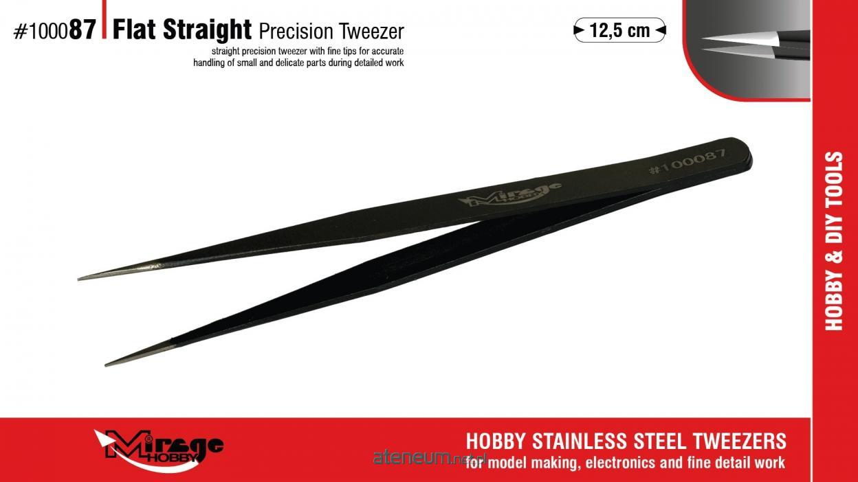 Seria Mirage Hobby Precision Tweezers to seria wysokiej jakości pęset wykonanych ze stali nierdzewnej, zaprojektowanych do precyzyjnej pracy z drobnymi i delikatnymi elementami. Pęsety zapewniają doskonałą kontrolę, stabilny chwyt oraz komfort pracy podczas montażu, malowania i pozycjonowania detali. Każdy model w serii został opracowany z myślą o konkretnym zastosowaniu - od bardzo drobnych elementów, przez części fototrawione, aż po pracę w trudno dostępnych miejscach. Cechy pęset Mirage Hobby Precision Tweezers: stal nierdzewna - trwałość i odporność na korozję precyzyjnie spasowane końcówki wysoka kontrola chwytu ergonomiczny kształt przeznaczone do modelarstwa, elektroniki i prac precyzyjnych. MIRAGE 100087 PĘSETA FLAT STRAIGHT PRECISION TWEEZER 12,5cm to Pęseta prosta z ostrymi końcówkami. Pęseta z prostymi, cienkimi końcówkami do precyzyjnego chwytania drobnych elementów. Idealna do ogólnych prac montażowych i manipulowania małymi częściami. montaż detali ogólne prace modelarskie drobne elementy plastikowe i żywiczne