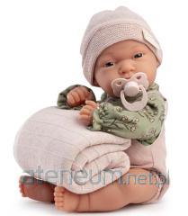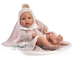 Realistycznie wyglądająca, winylowa dziewczynka z miękkim brzuszkiem posiada wyrzeźbione włoski oraz delikatnie malowane brwi, usta, paznokcie i fałdki. Clara od marki Antonio Juan ubrana jest w mięciutką, bawełnianą sukienkę w paseczki. Ręcznie szyty w Hiszpanii strój uzupełnia wiązana czapeczka, białe majteczki oraz skarpetki.
