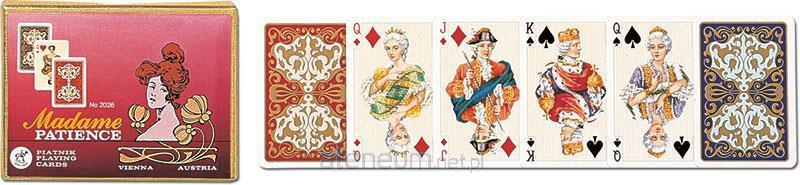 Najwyższej jakości karty do pasjansa renomowanej firmy Ferd. Piatnik & Sohne. Eleganckie pudełeczko kryje 2 niewielkie talie. Na rewersach (koszulkach) zdobiony ornament. Mniejszy format sprawia, że łatwiej układa się pasjansa. Talie składają się z 55 plastikowanych kart o wymiarach 44 x 66 mm i gramaturze 310. Wyroby wiedeńskiej fabryki Ferd. Piatnik & Sohne od 1824 roku urzekają bogactwem wzorów i perfekcją wykonania. Jakość i tradycja!