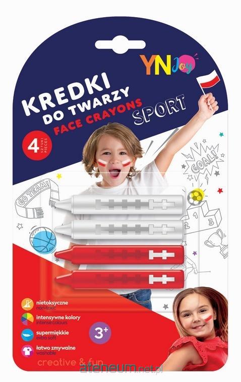 4 wysuwane kredki w opakowaniu: 2 białe i 2 czerwone. Świetnie sprawdzą się podczas meczy piłkarskich i tematycznych imprez patriotycznych. Plastikowe opakowanie i wysuwane kredki zapewniają, że kredka się nie złamie, a ręce nie pobrudzą. Łatwo zmywalne, nietoksyczne, supermiękkie.