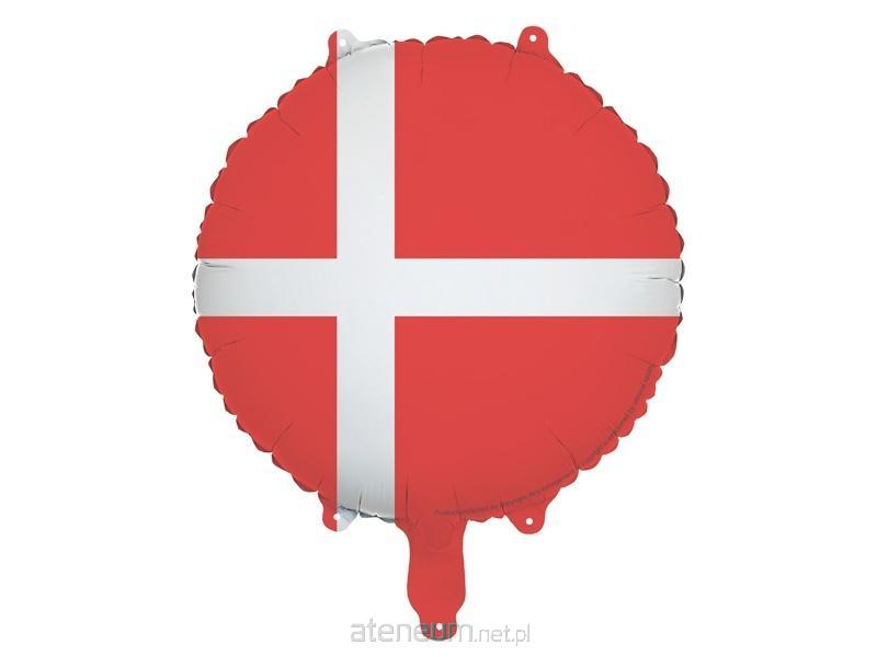 Balon foliowy Flaga Danii. Średnica przed napompowaniem ok. 45 cm (18''), średnica po napompowaniu ok. 35 cm (14''). Do napompowania powietrzem i helem. Zestaw zawiera słomkę. Balon jest samouszczelniający się. Posiada haczyki ułatwiające montaż balona do dekoracji.