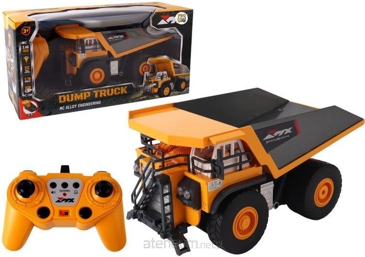 zdalnie sterowaną wywrotkę o dużych kołach i podnoszoną skrzynią,