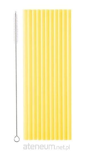 Słomki plastikowe w kolorze żółtym, średnica ok. 7 mm, długość ok. 23 cm. Zestaw zawiera czyścik. Produkt wielokrotnego użytku.(1 op. / 12 szt.)