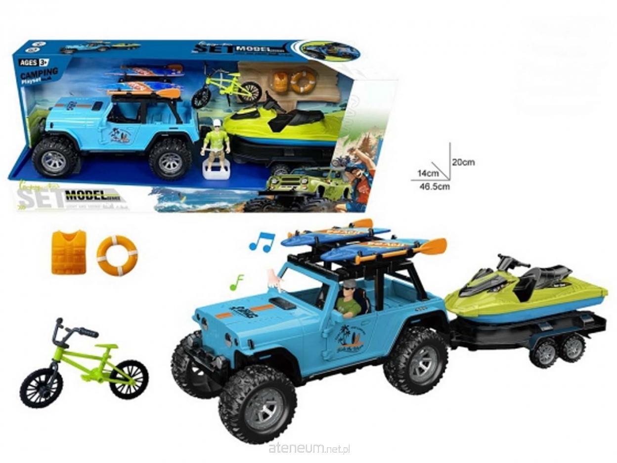 Fantastyczny zestaw dla małych miłośników wodnych przygód i wypraw terenowych! W komplecie znajduje się samochód terenowy z przyczepą, skuter wodny, rower, figurka oraz akcesoria tematyczne. To idealna propozycja do kreatywnej zabawy w biwak nad jeziorem lub wakacyjną wyprawę. Auto wyposażone jest w duże, terenowe koła oraz efekty dźwiękowe, które uatrakcyjniają zabawę. Na dachu znajdują się deski/kajaki, a przyczepa umożliwia transport skutera wodnego. Zestaw rozwija wyobraźnię i zachęca do tworzenia własnych scenariuszy zabawy. Zawartość zestawu: Samochód terenowy z przyczepą; Skuter wodny; Rower; Figurka; Kamizelka ratunkowa i koło ratunkowe. Wymiary pojazdu z przyczepą: Długość: 46,5 cm; Szerokość: 14 cm; Wysokość: 20 cm. Produkt przeznaczony dla dzieci powyżej 3. roku życia.