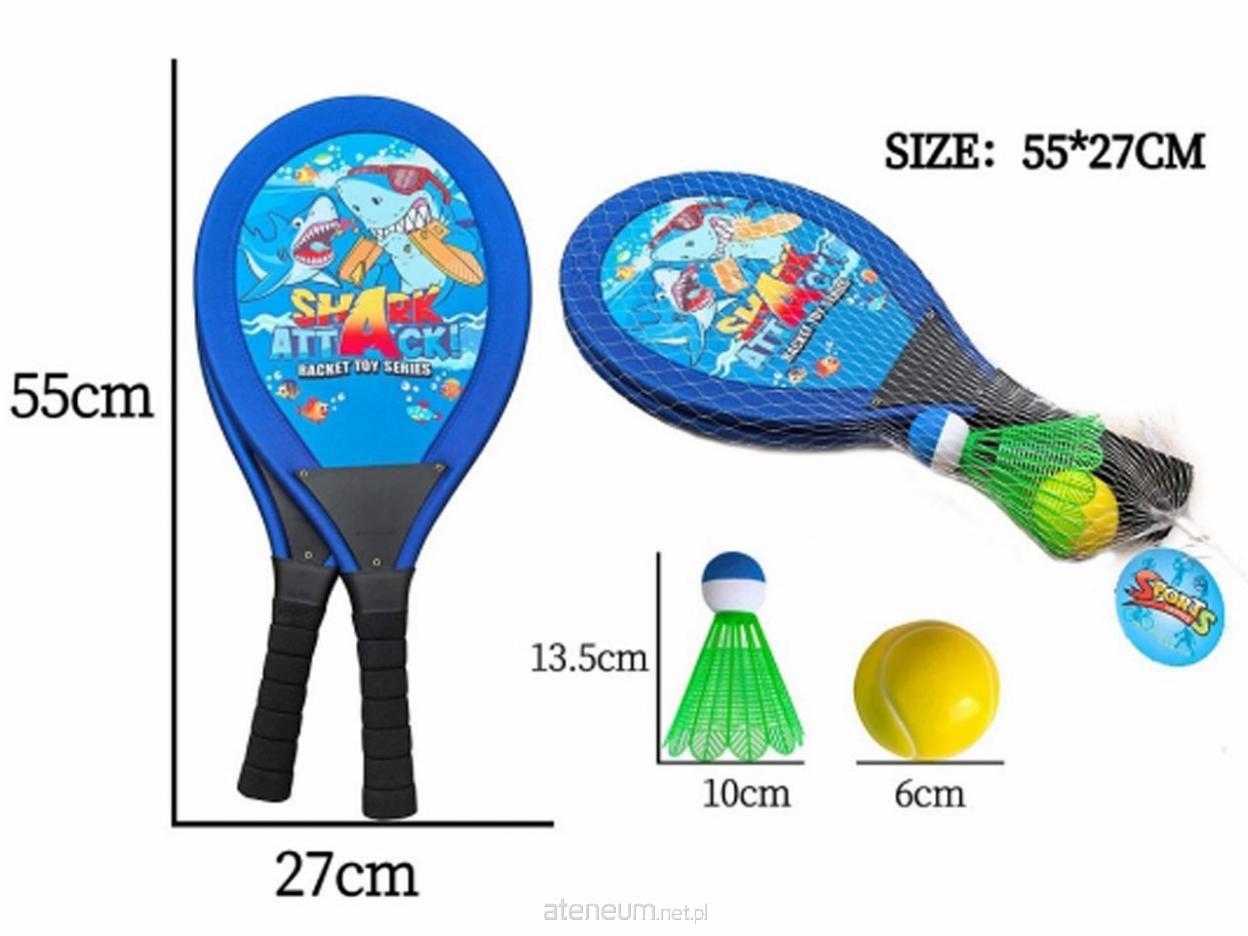 Kolorowy zestaw rakietek z motywem rekinów to idealna propozycja do aktywnej zabawy na świeżym powietrzu. W komplecie znajdują się dwie solidne rakietki, lotka oraz piłeczka, dzięki czemu dzieci mogą grać zarówno w stylu badmintona, jak i klasycznej gry rakietowej. Antypoślizgowe uchwyty zapewniają wygodny chwyt, a lekka konstrukcja sprawia, że zestaw jest odpowiedni dla najmłodszych. Świetny wybór na plażę, do ogrodu, parku czy na wakacyjny wyjazd. Wymiary rakietki: 55 x 27 cm. Wymiary lotki: Wysokość: 13,5 cm. Średnica podstawy: 10 cm. Wymiary piłeczki: Średnica: 6 cm. W zestawie: 2 rakietki, 1 lotka, 1 piłeczka.