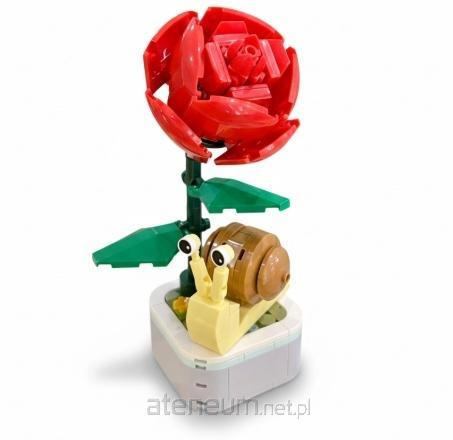 Przenieś się do świata, w którym natura spotyka się z nieograniczoną wyobraźnią dzięki temu wyjątkowemu zestawowi klocków. Główną rolę gra tutaj klasyczna, intensywnie czerwona róża, która rozkwita w pełnej krasie, ciesząc oko dopracowanymi detalami płatków. To jednak nie jest zwykła roślina - u jej stóp zamieszkał uroczy, uśmiechnięty ślimak o wielkich oczach, który nadaje całości bajkowego i przyjaznego charakteru. Cała kompozycja została osadzona w estetycznej, białej doniczce, co czyni ją gotową do postawienia w dowolnym miejscu bez konieczności szukania dodatkowych podstawek.