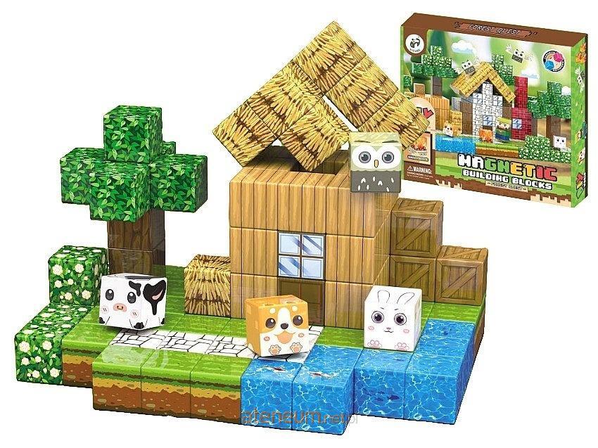 zestaw 99 klocków magnetycznych z obrazkami, domek w lesie; 29x26x3,5cm, Box